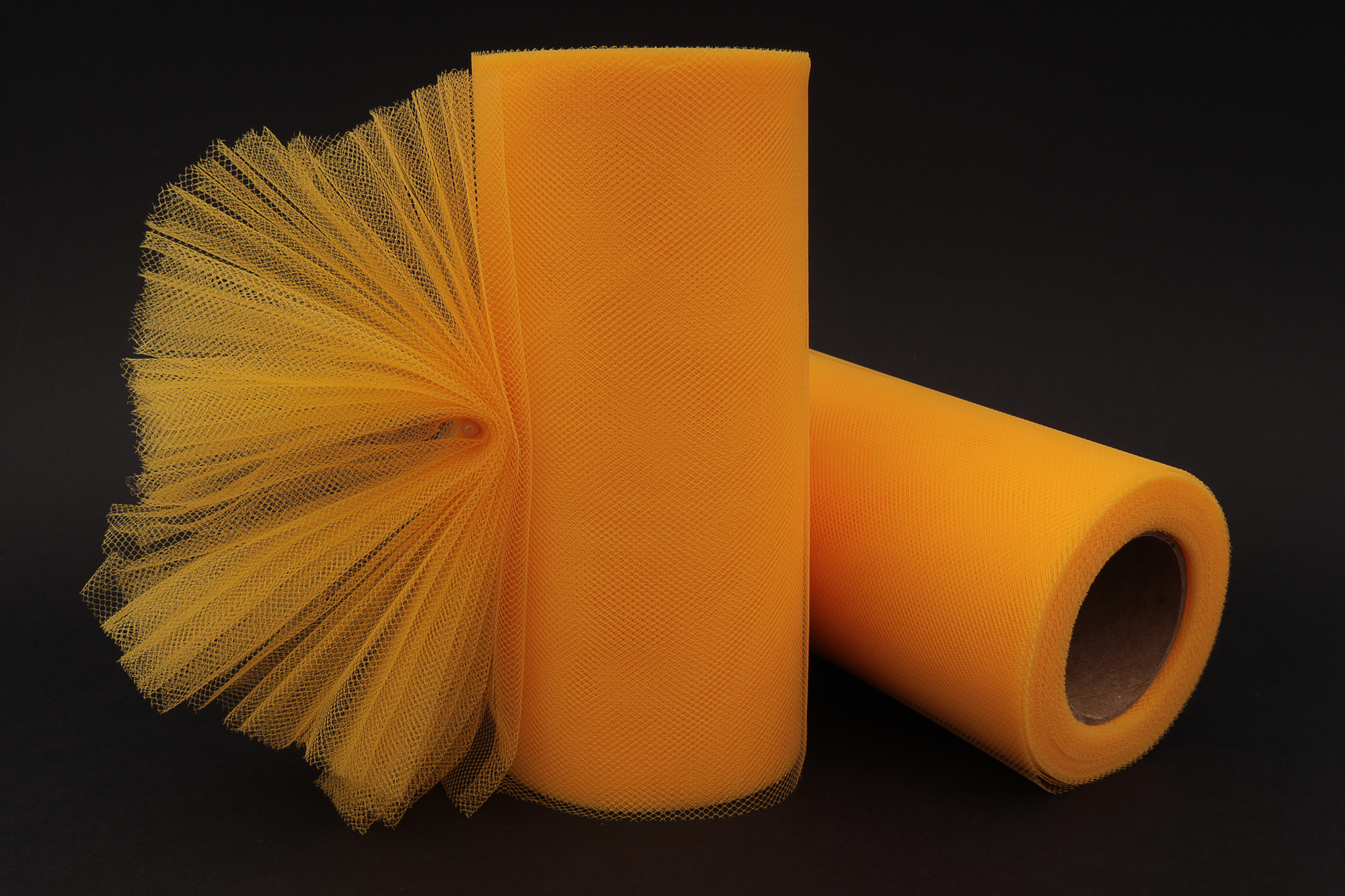 Купить фатин нейлоновый, средней жесткости 15 см * 25 ярдов(+-2м) жёлто-оранжевого цвета в любое удобное для Вас время всегда возможно в нашем интернет-магазине.
