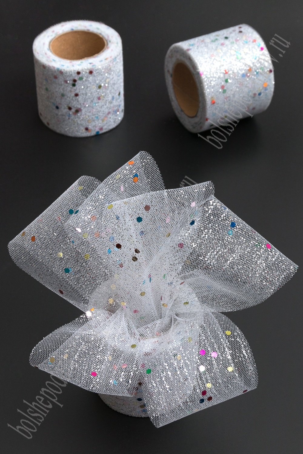 Фатин с блестками и пайетками 5,5 см*15 ярд (SF-5807) белый №1А