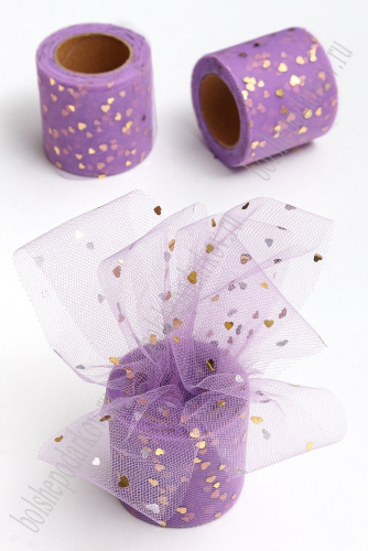 Фатин «Сердечки» 5,5 см*15 ярд (SF-5808) фиолетовый/золото №32