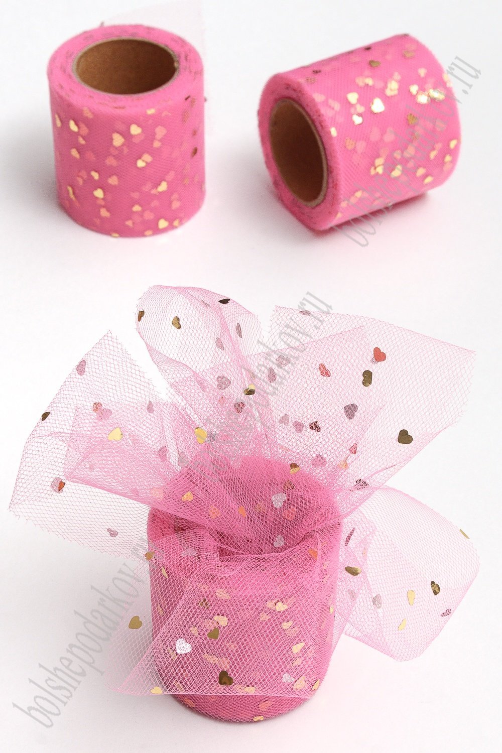 Фатин «Сердечки» 5,5 см*15 ярд (SF-5808) ярко-розовый/золото №11