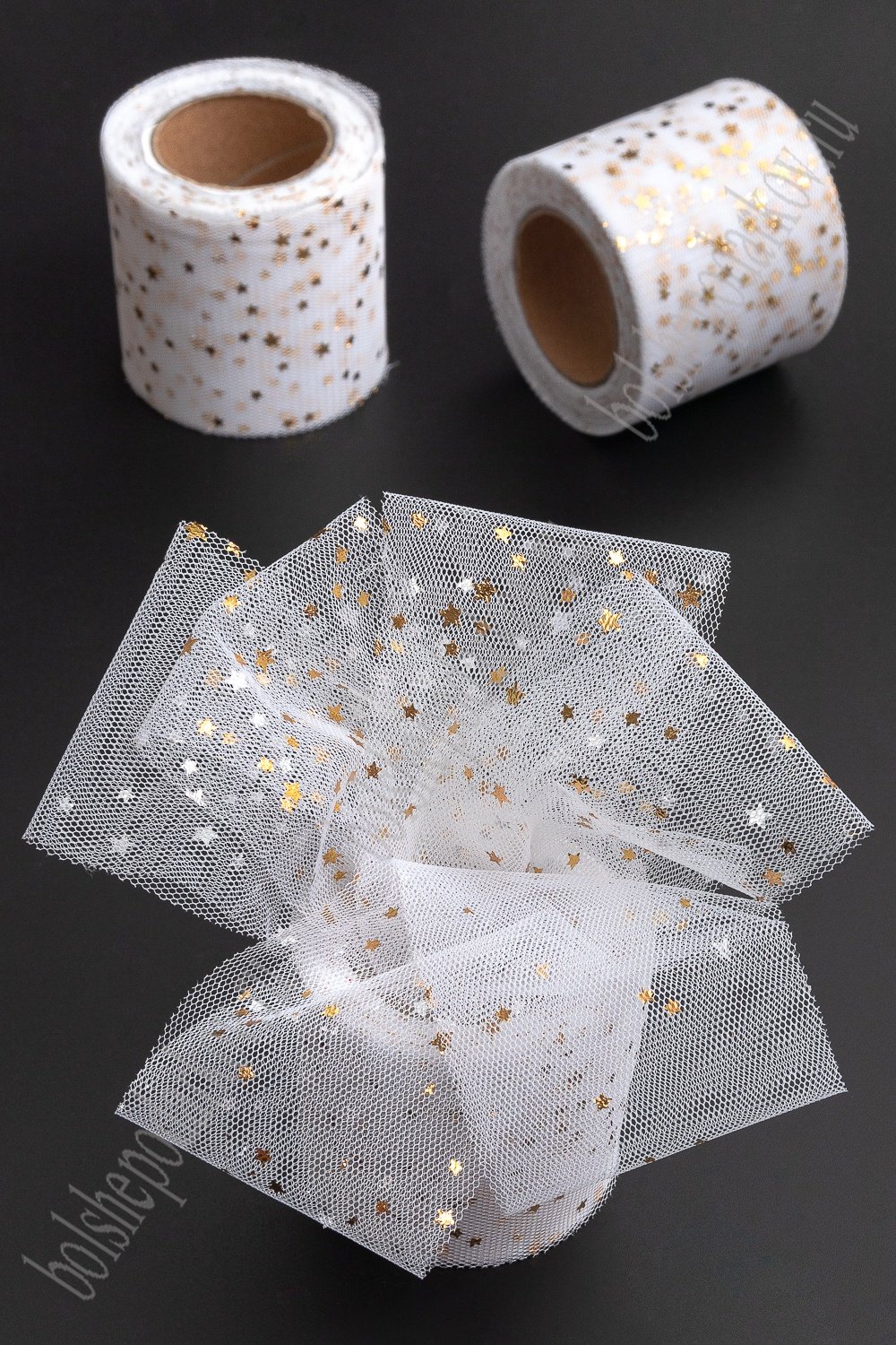 Фатин «Звездочки» 5,5 см*15 ярд (SF-5809) белый/золото №23