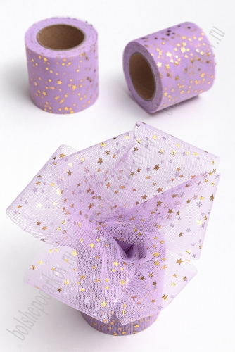 Фатин «Звездочки» 5,5 см*15 ярд (SF-5809) фиолетовый/золото №4