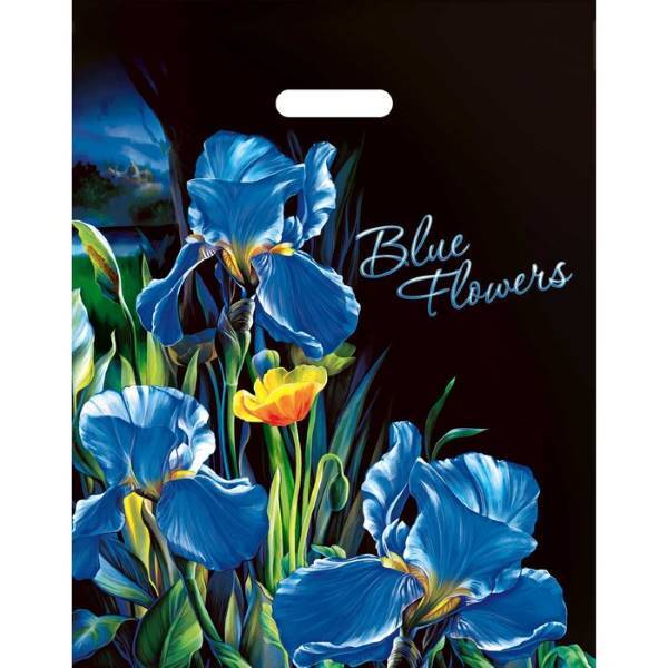 Полиэтиленовый пакет ПВД с прорубной ручкой 60 мкм 38х47 см Ирисы 50 шт