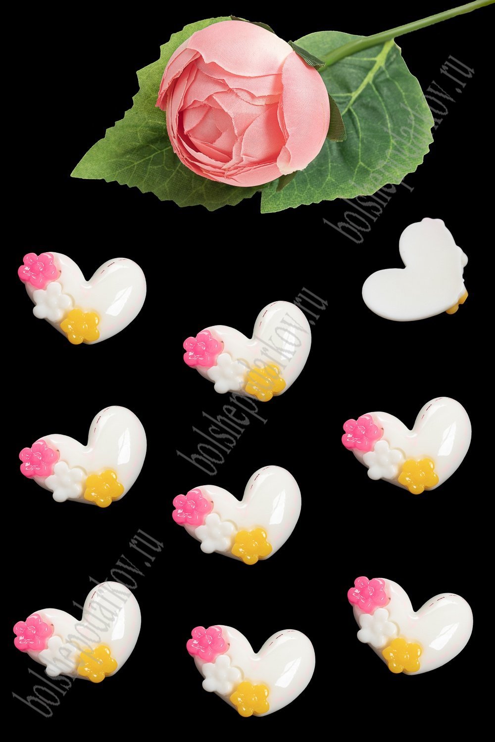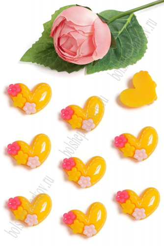 Кабошон "Сердечко с цветочками" (50 шт) SF-5735, белый