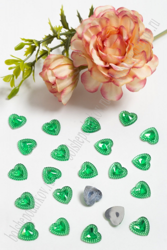 Кабошоны-стразы "Сердечко" 12 мм (200 шт) SF-807, зеленый