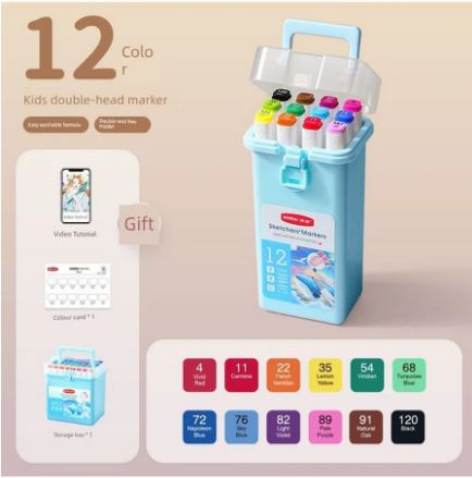 Набор из 12 ярких скетч маркеров для детей и взрослых Комплект насыщенных фломастеров подойдет для школы и изо, а также для рисования дома.