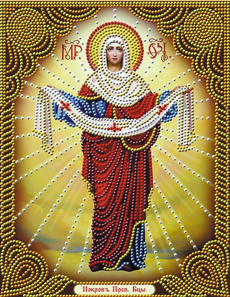 Алмазная мозаика 40*50 на подрамнике полной выкладки круглые стразы. Сюжеты Икона - частичная выкладка страз.; В набор входит: