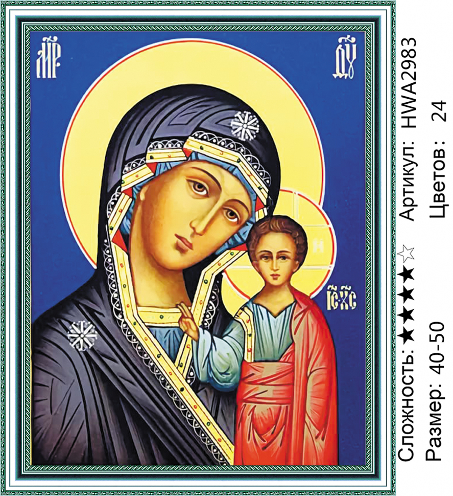 Алмазная мозаика 40*50 на подрамнике полной выкладки круглые стразы. Сюжеты Икона - частичная выкладка страз.; В набор входит: