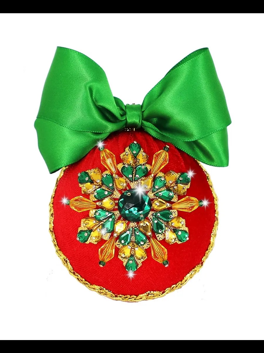 Состав набора: пенопластовый шар, ткань бархат, гвоздики-булавки; тесьма, подвес, стразы, бусины, филигрань, колпачок, инструкция.