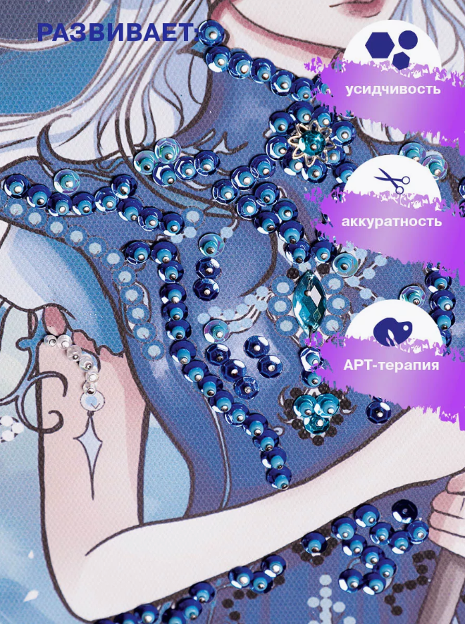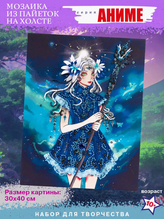 Мозаика из пайеток на холсте "Предвестница" анимэ