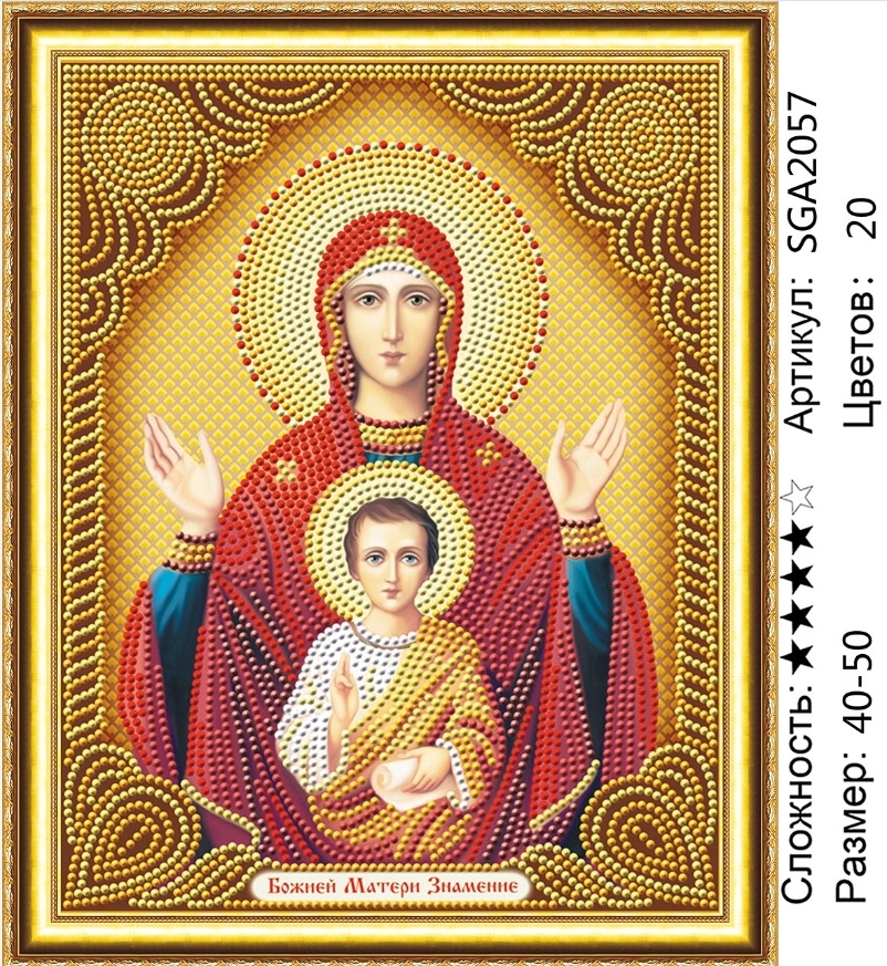 Алмазная мозаика 40*50 на подрамнике полной выкладки круглые стразы. Сюжеты Икона - частичная выкладка страз.; В набор входит: