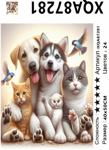 XQA87277 Мозаика 40*50 XQA на подрам., полная выкл., кругл.стразы