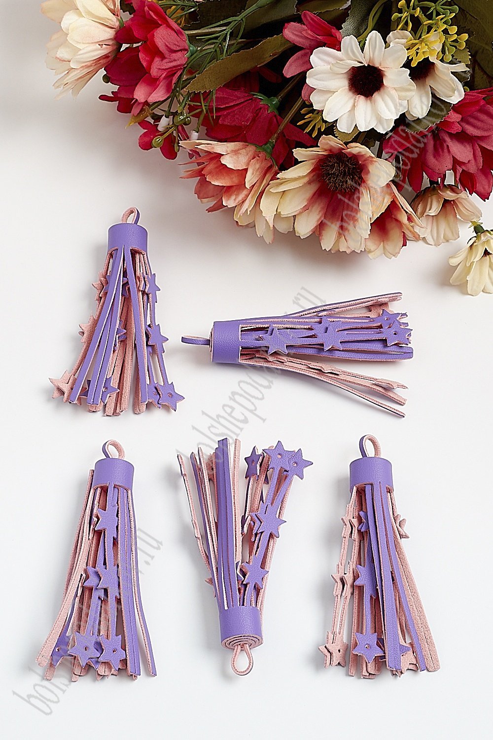 Кисточки кожзам 7,5 см "Звездочки" (5 шт) SF-1655, фиолетовый №19