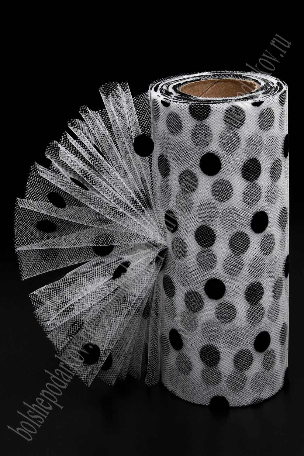 Фатин "Крупный горох" 15 см*15 ярд (SF-3779) белый/черный