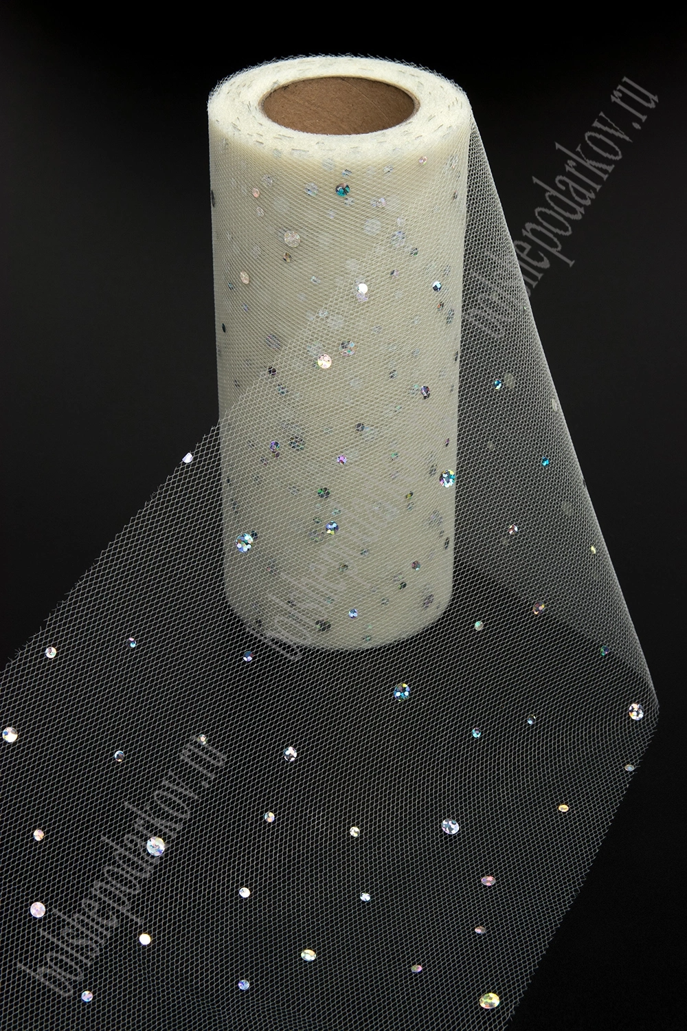 Фатин с пайетками "Горох" 15 см*25 ярд (SF-2939) айвори №33