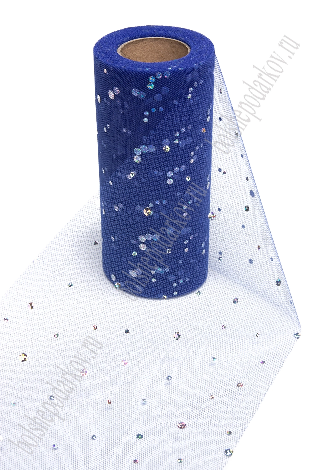 Фатин с пайетками "Горох" 15 см*25 ярд (SF-2939) синий №24