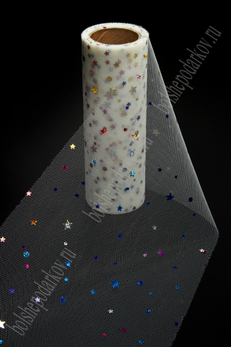 Фатин с пайетками "Звездочки" 15 см*10 ярд (SF-2945) айвори №33