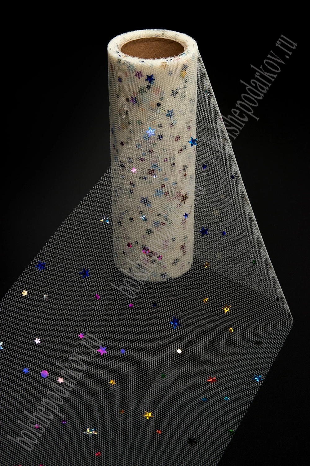 Фатин с пайетками "Звездочки" 15 см*10 ярд (SF-2945) бежевый №7
