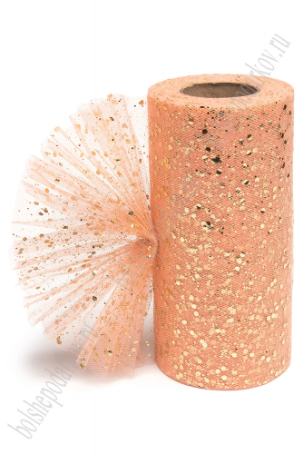 Фатин с узором "Цветы" 15 см*10 ярд (SF-2940) персиковый