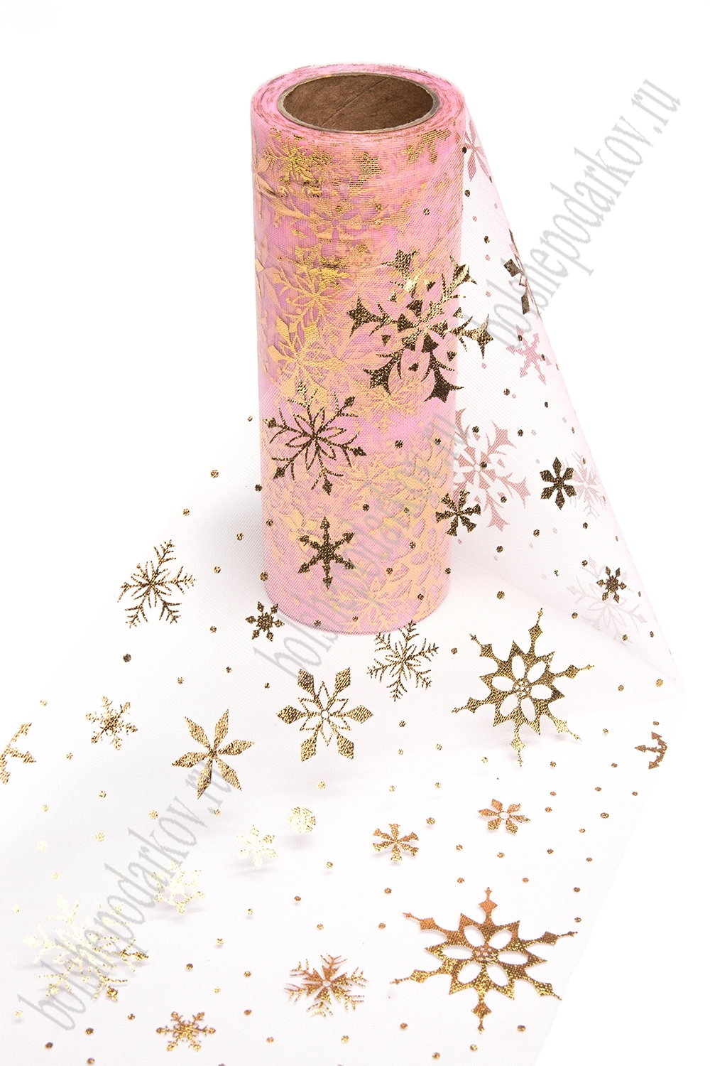 Фатин "Снежинки" 15 см*15 ярд (SF-3776) розовый/золото