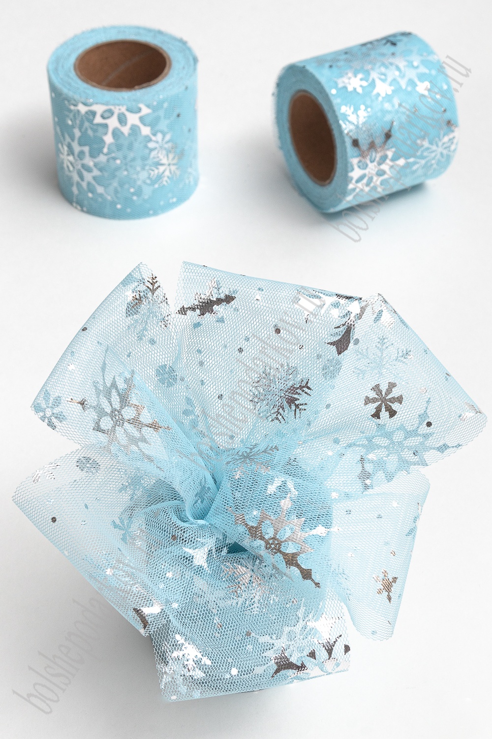 Фатин «Снежинки» 5,5 см*15 ярд (SF-5812) голубой/серебро №14