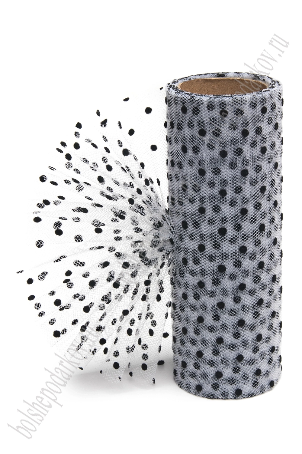 Фатин в горошек 15 см*10 ярд (SF-2941) белый/черный