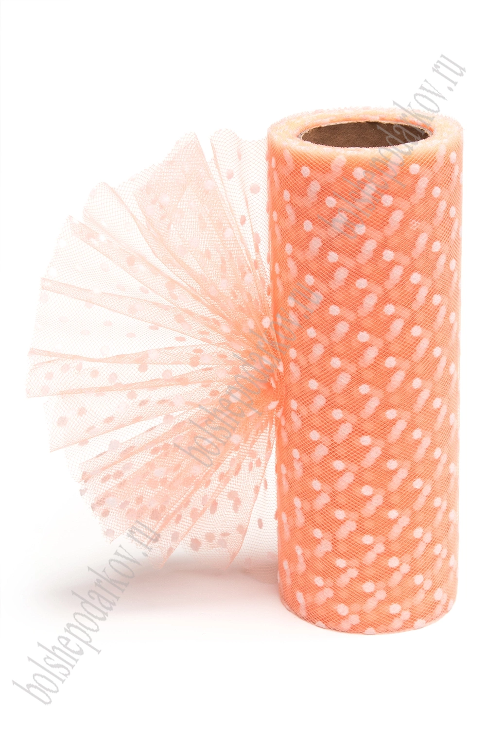 Фатин в горошек 15 см*10 ярд (SF-2941) персиковый №44