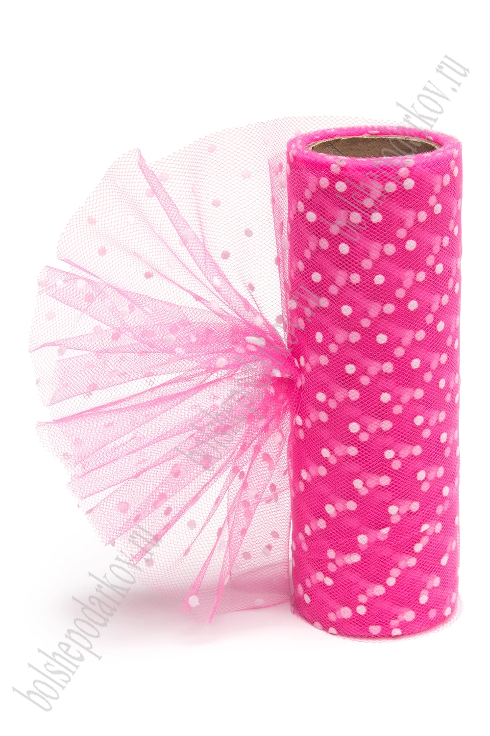 Фатин в горошек 15 см*10 ярд (SF-2941) ярко-розовый №35