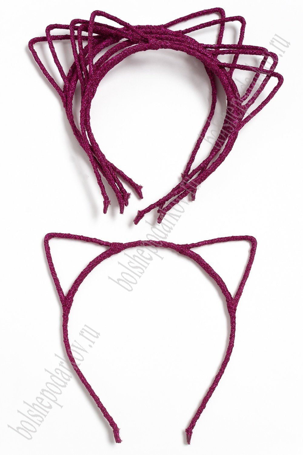 Ободки "Ушки" 5 мм ткань с люрексом (10 шт) SF-1128, фукси