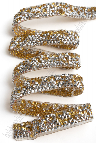 Стразовая лента 1,2 см*5 ярд (SF-6048) розовый/серебро