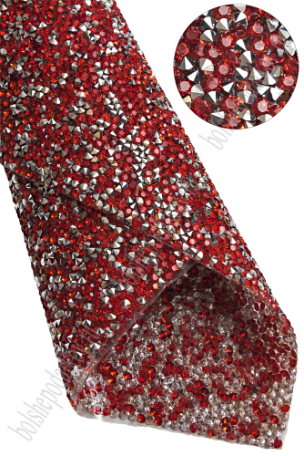 Стразовое полотно на силиконовой основе 24*40 см (SF-6004) красный/серебро №21