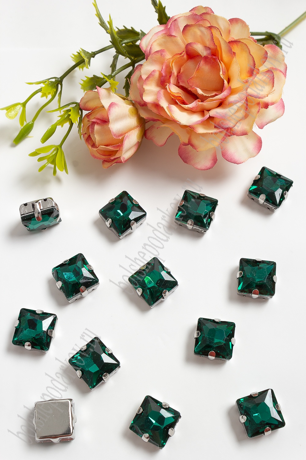 Стразы пришивные 12 мм "Квадрат" (20 шт) SF-3710, изумрудный №5