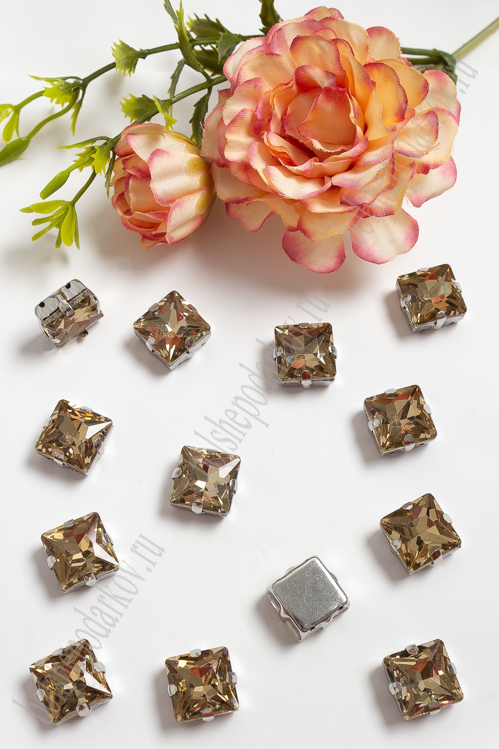 Стразы пришивные 12 мм "Квадрат" (20 шт) SF-3710, светлое золото №3
