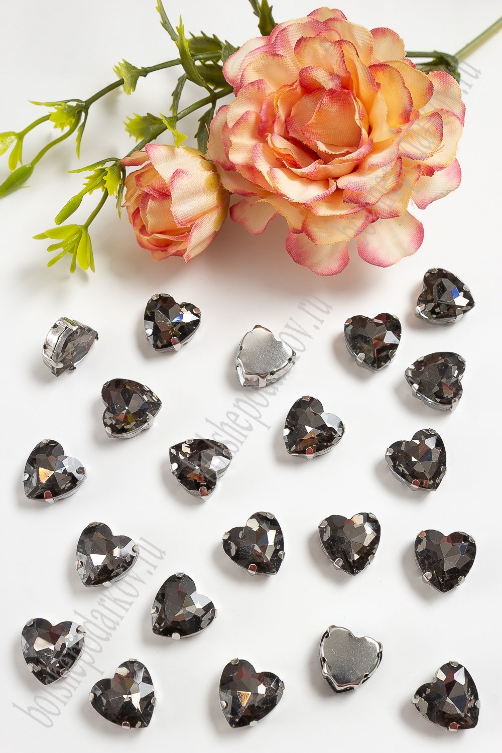 Стразы пришивные 12 мм "Сердечко" (10 шт) SF-3716, графитовый №2