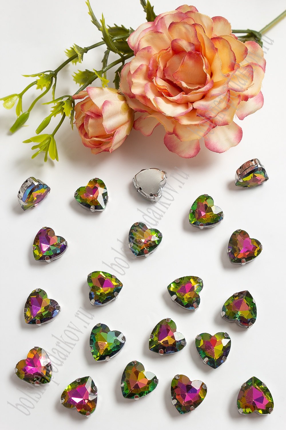 Стразы пришивные 12 мм "Сердечко" (10 шт) SF-3716, хамелеон №24