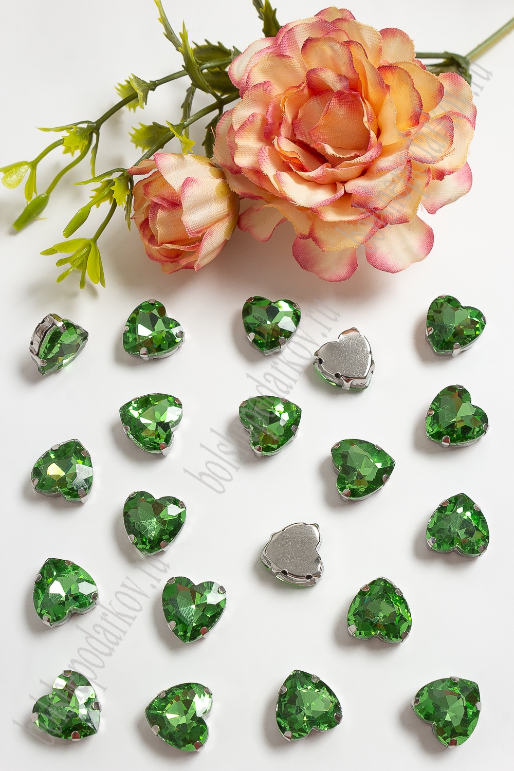 Стразы пришивные 12 мм "Сердечко" (10 шт) SF-3716, салатовый №7