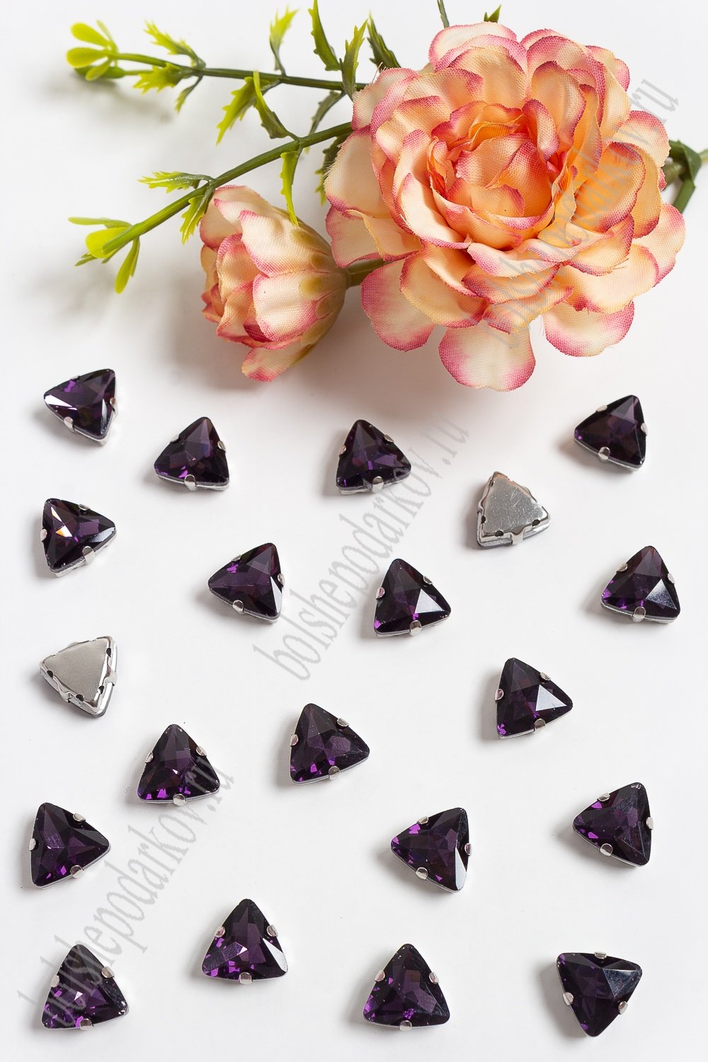 Стразы пришивные 12 мм "Треугольник" (10 шт) SF-3766, темно-сиреневый №15