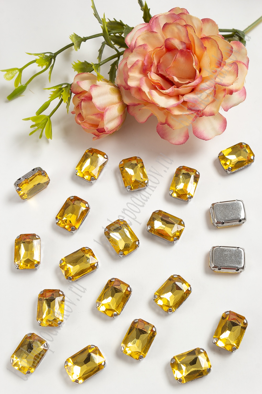 Стразы пришивные 14 мм "Прямоугольник" (20 шт) SF-3703, золото №14