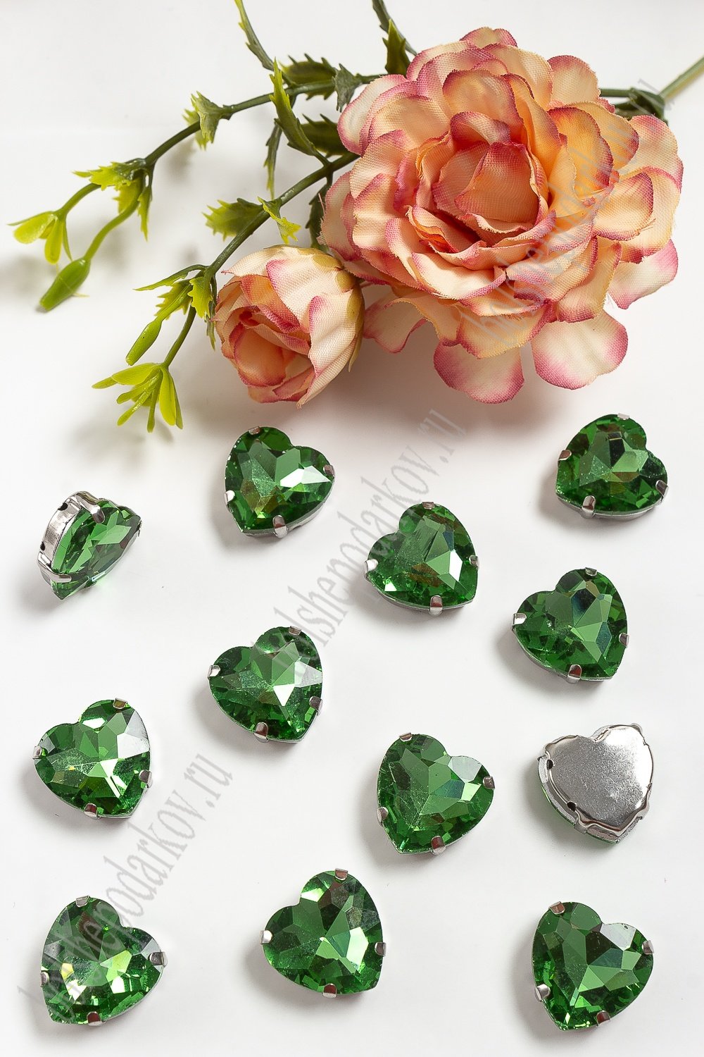 Стразы пришивные 16 мм "Сердечко" (10 шт) SF-3715, салатовый №7