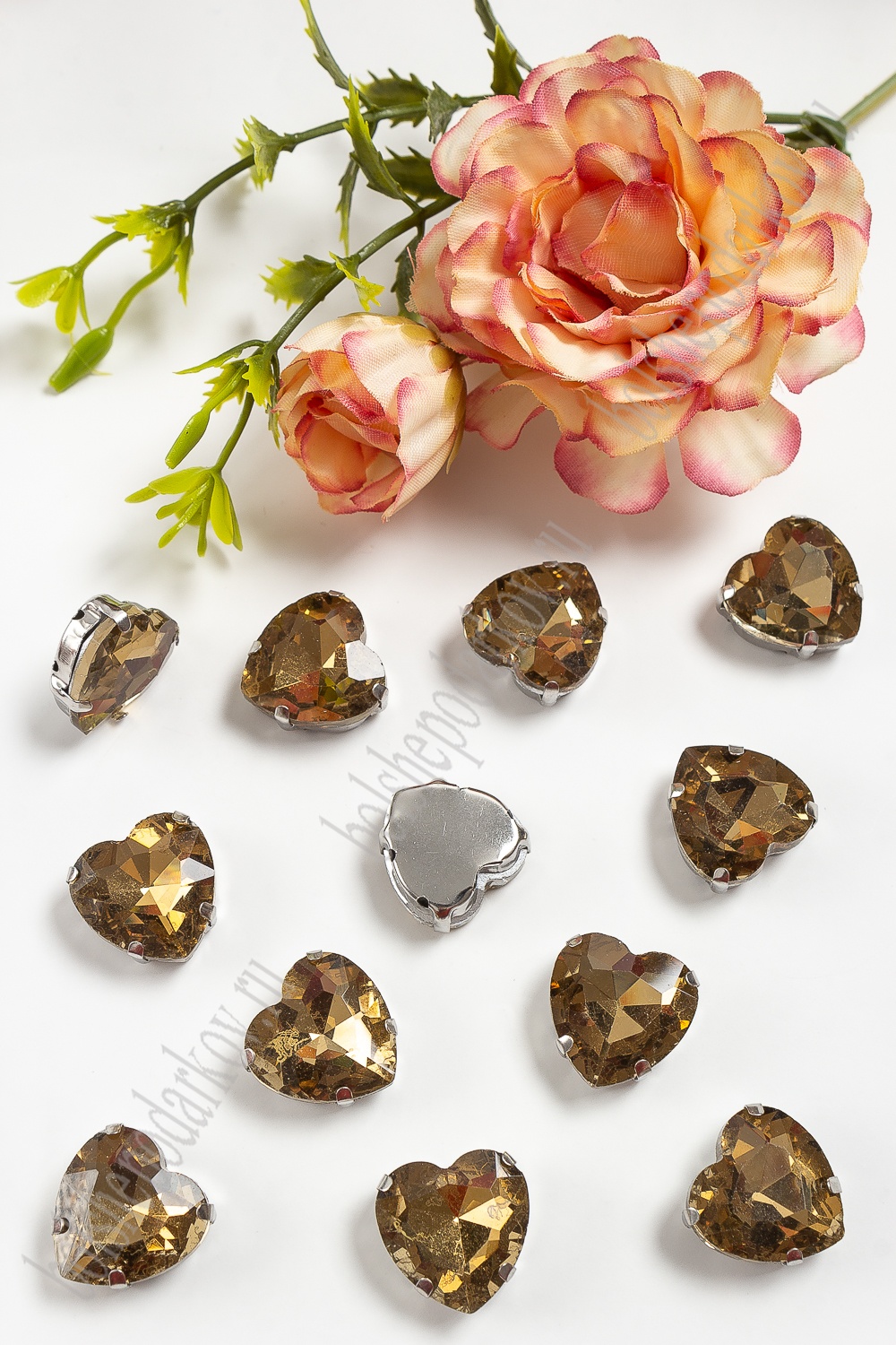 Стразы пришивные 16 мм "Сердечко" (10 шт) SF-3715, светлое золото №3