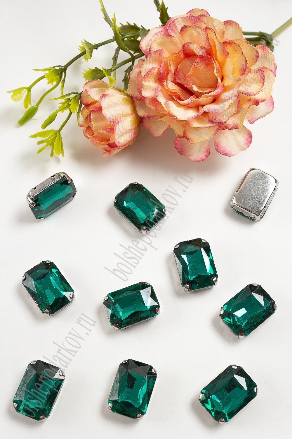 Стразы пришивные 18 мм "Прямоугольник" (20 шт) SF-3702, изумрудный №5