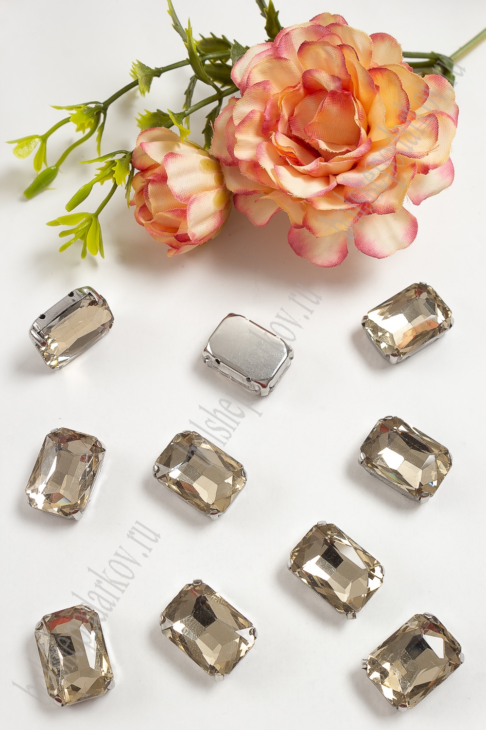 Стразы пришивные 18 мм "Прямоугольник" (20 шт) SF-3702, светлое золото №3