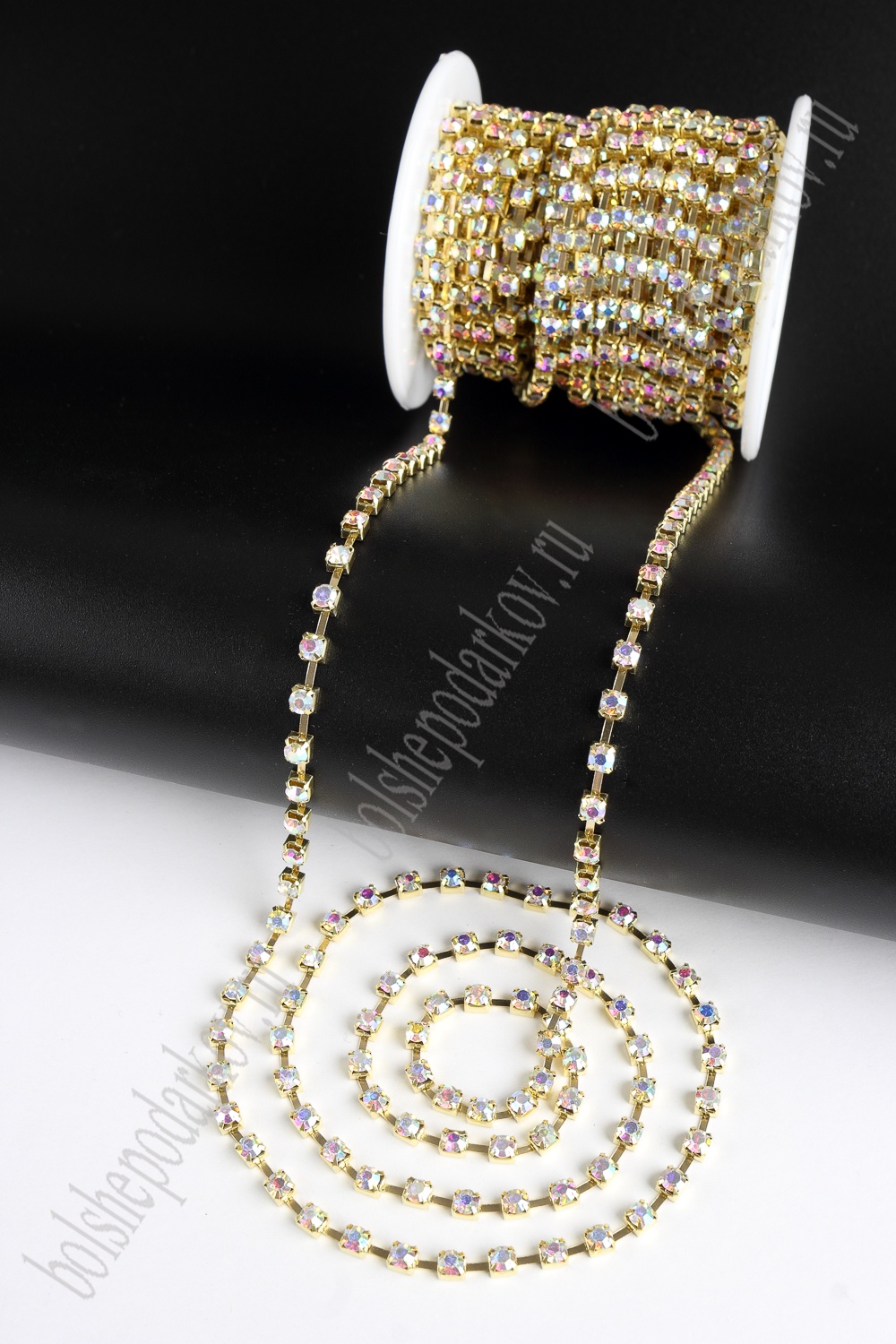 Стразы в бобине SS16 (4 мм*10 ярд) SF-2053, серебро хамелеон в золотой оправе