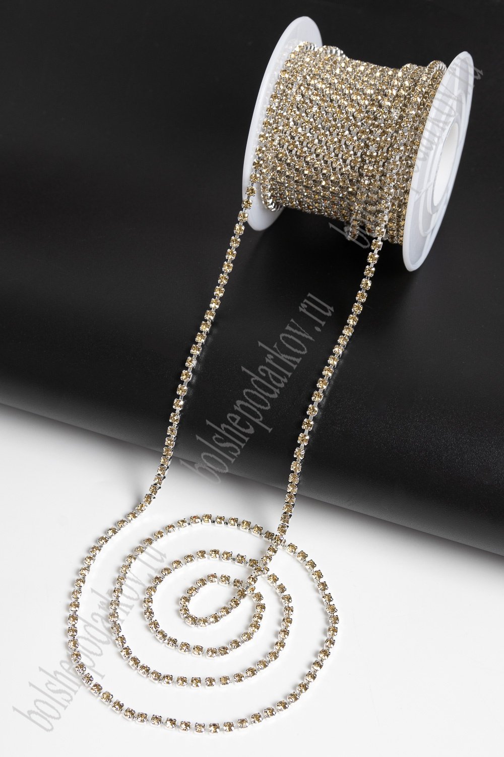 Стразы в бобине SS8М (2,4 мм*10 ярд) SF-2054, золото в серебряной оправе