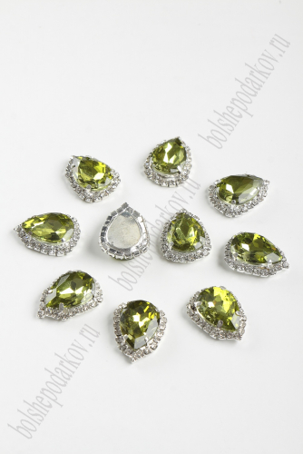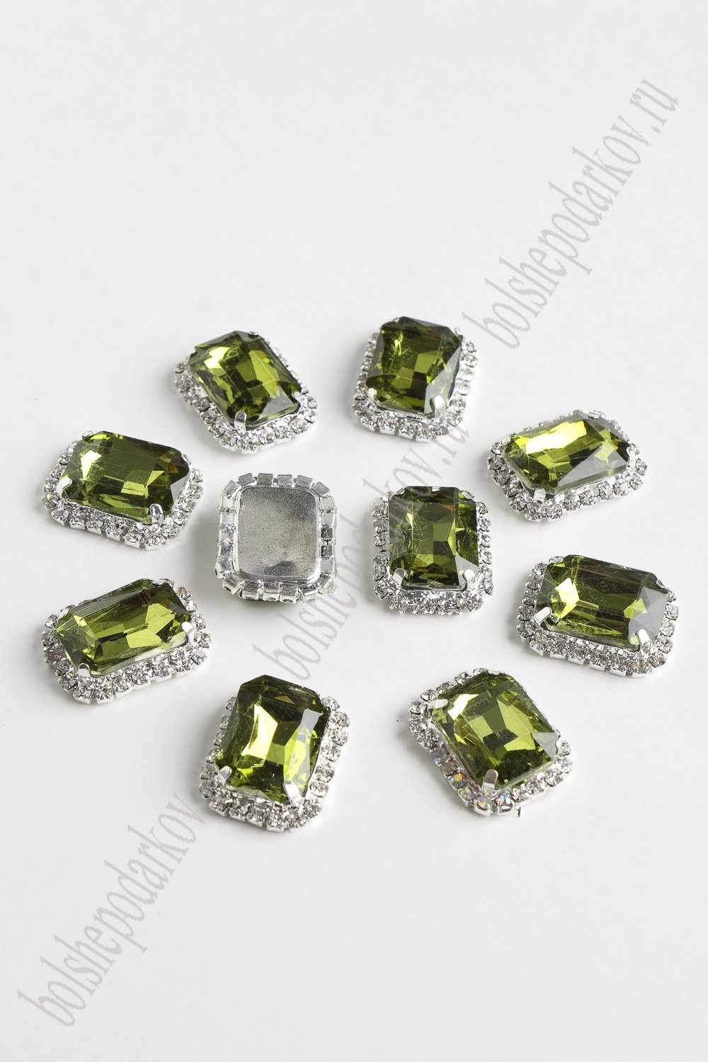 Стразы в серебряной оправе 23*17 мм "Прямоугольник" (5 шт) SF-2050, фисташковый №30