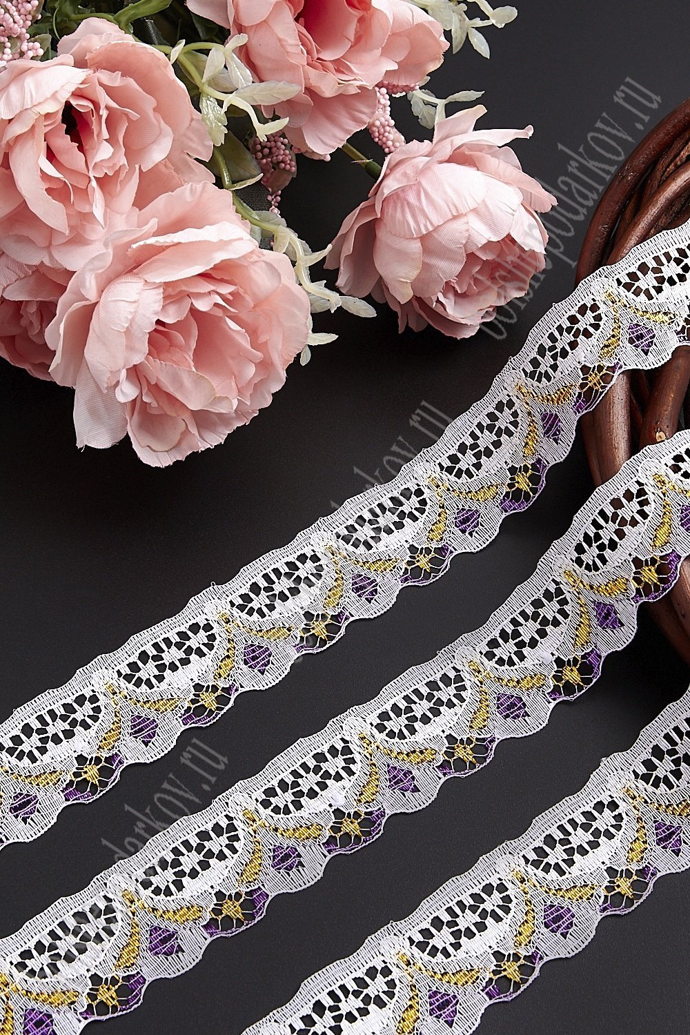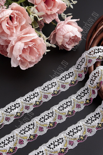 Кружево белое 3 см*10 ярд, с люрексом (SF-333) фиолетовый
