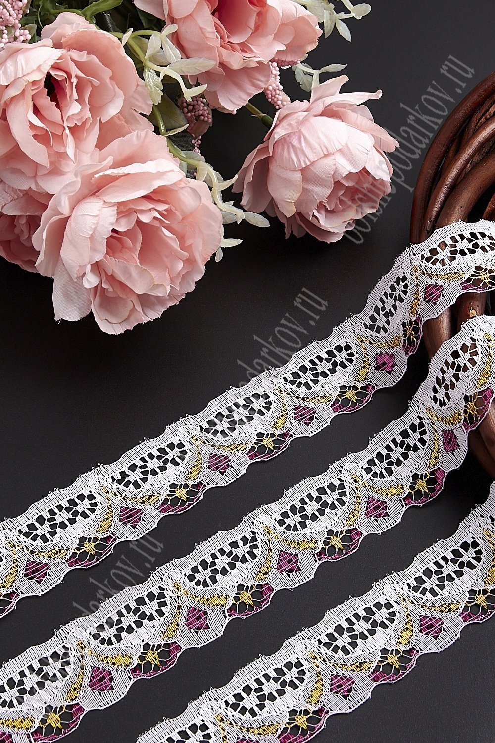 Кружево белое 3 см*10 ярд, с люрексом (SF-333) фукси