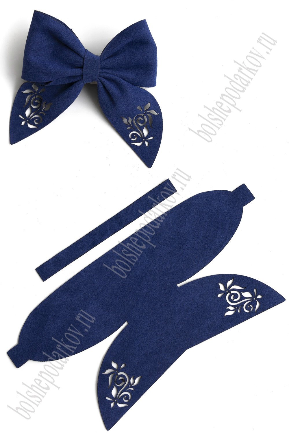 Лазерная вырубка из замши бант "Веточка" 18*9 см (5 шт) темно-синий №4
