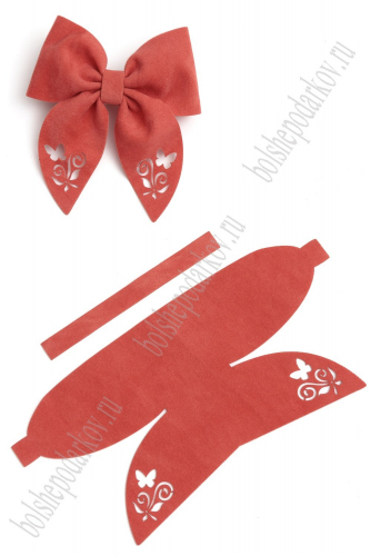Лазерная вырубка из замши бант "Веточка с бабочкой" 18*9 см (5 шт) коралловый №2
