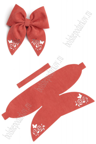 Лазерная вырубка из замши бант "Веточка с бабочкой" 19,8*10 см (5 шт) коралловый №2